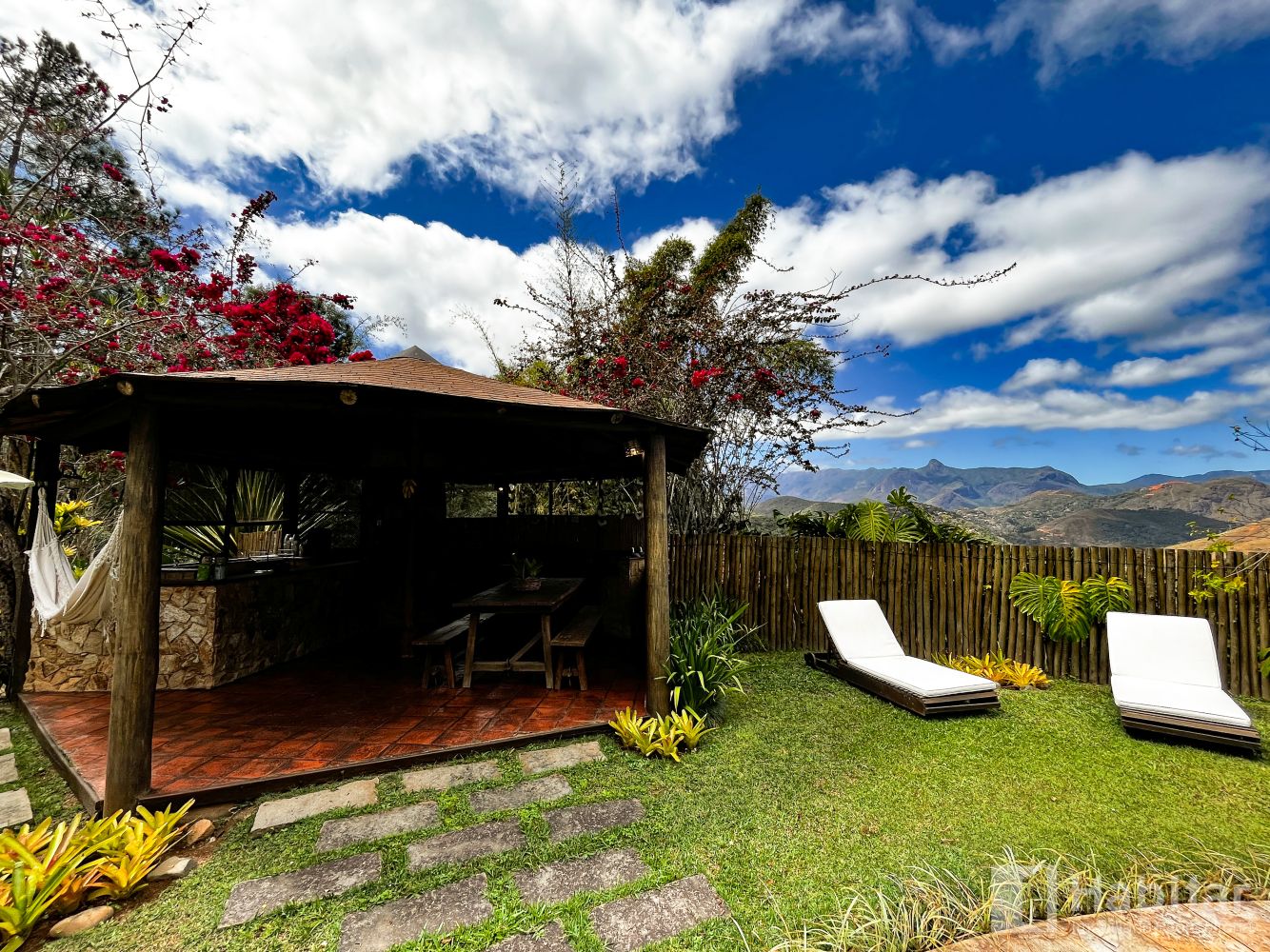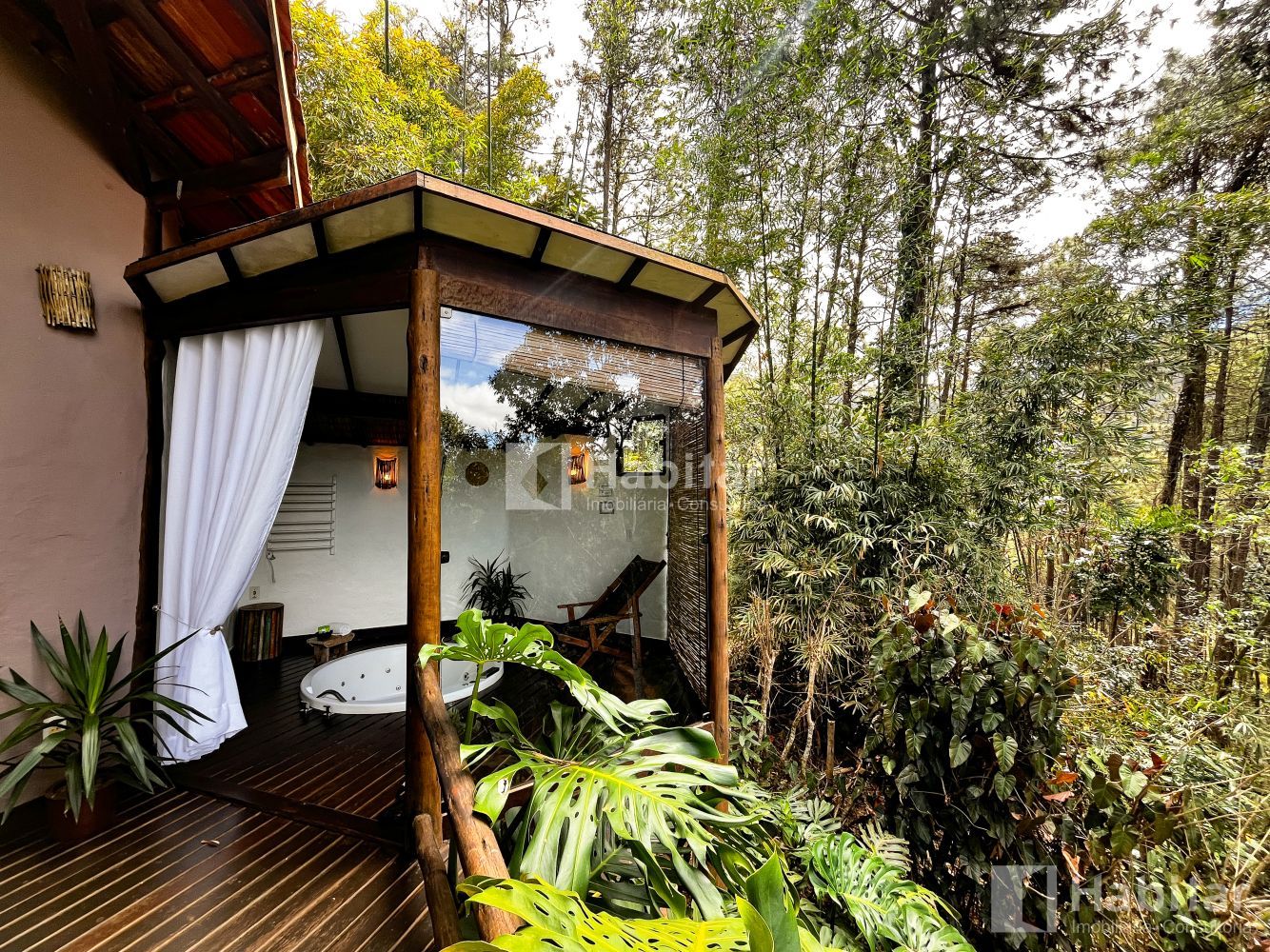 A casa possui dois Chalés com suíte; varanda e hidromassagem;