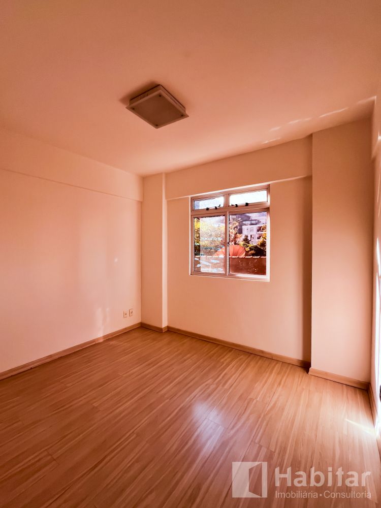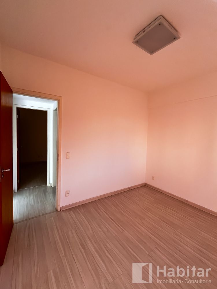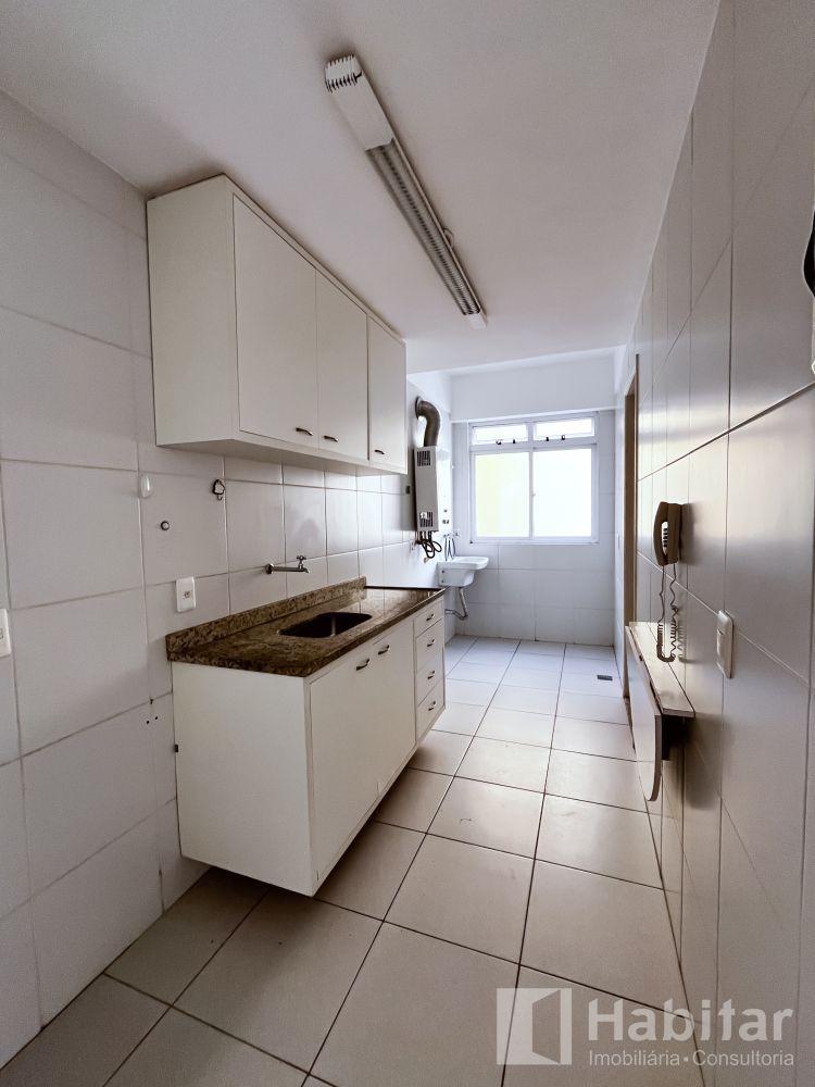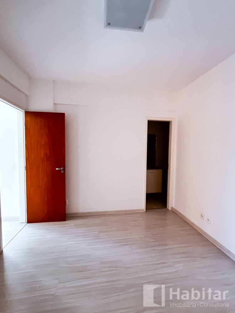 Ampla sala com varanda; 2 quartos (sendo 1 suíte); Banheiro social; Cozinha com armários planejados; Área de serviço; Dependência completa de empregada. Vaga demarcada. O condomínio não possui área de lazer.