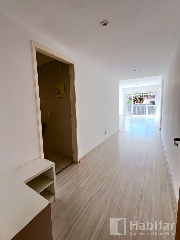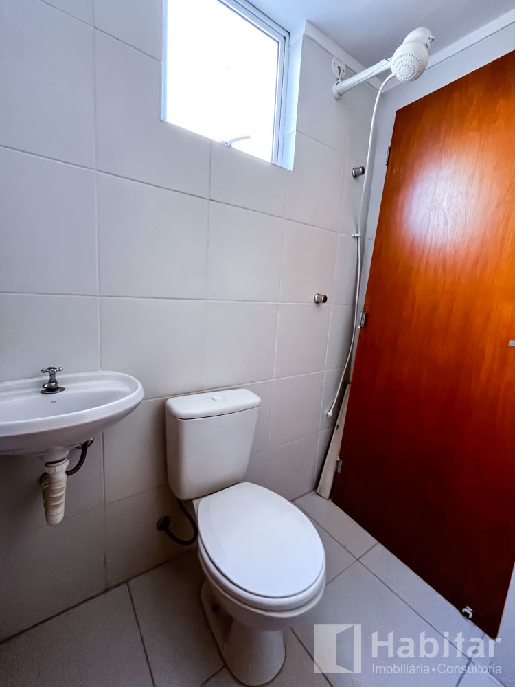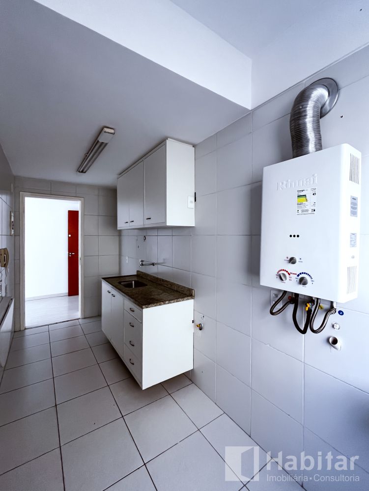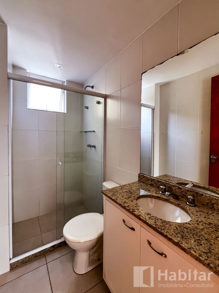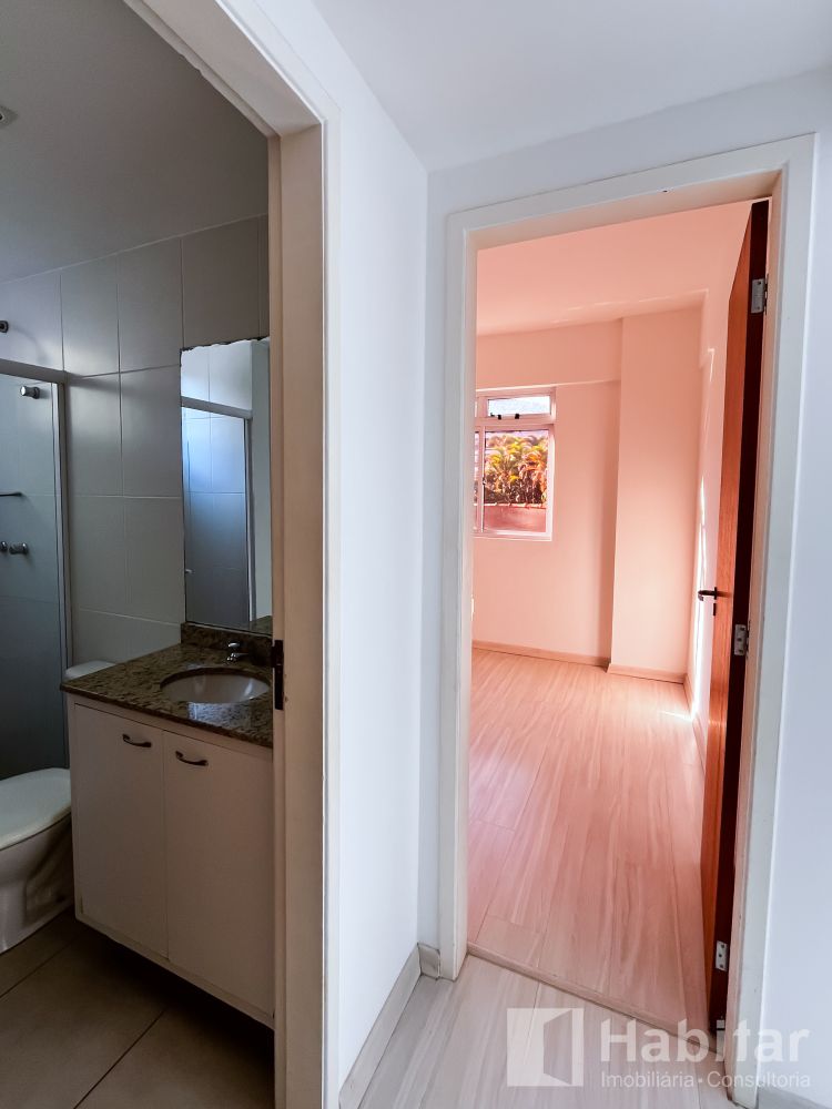 Ampla sala com varanda; 2 quartos (sendo 1 suíte); Banheiro social; Cozinha com armários planejados; Área de serviço; Dependência completa de empregada. Vaga demarcada. O condomínio não possui área de lazer.