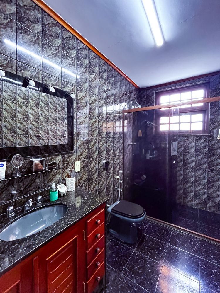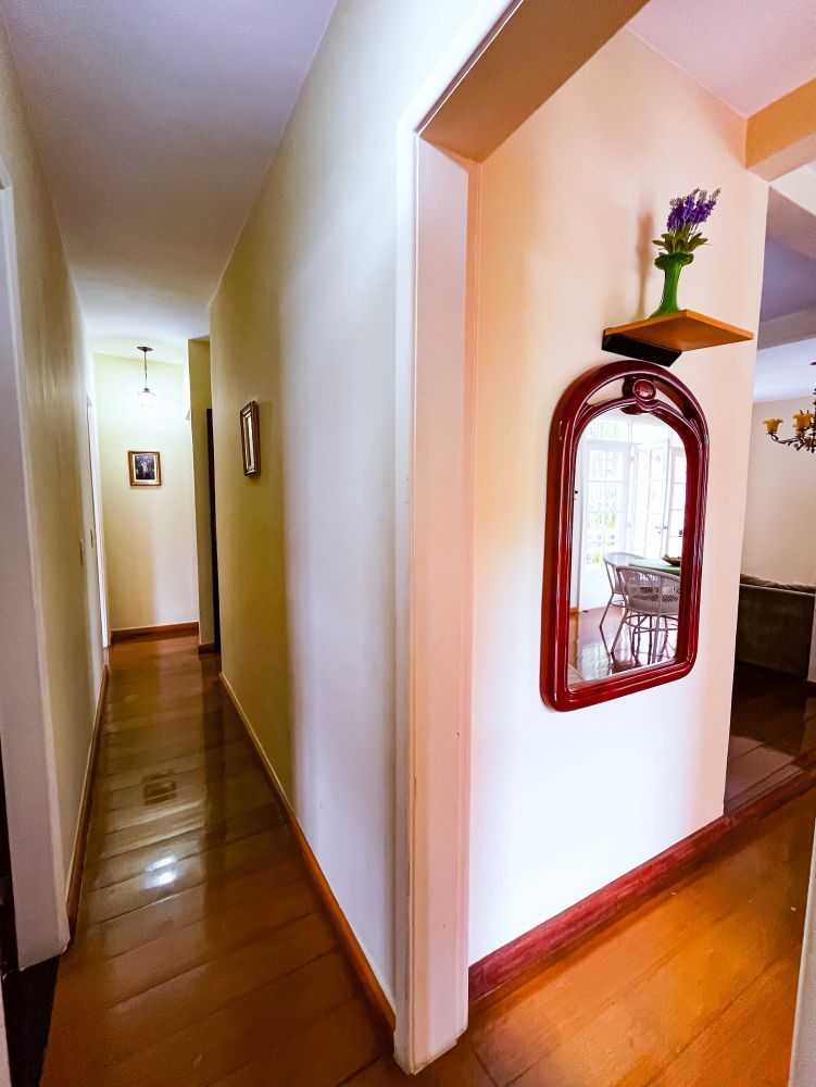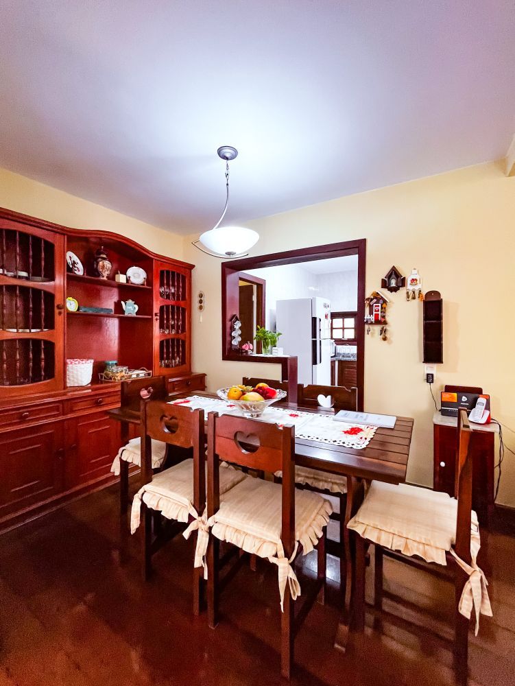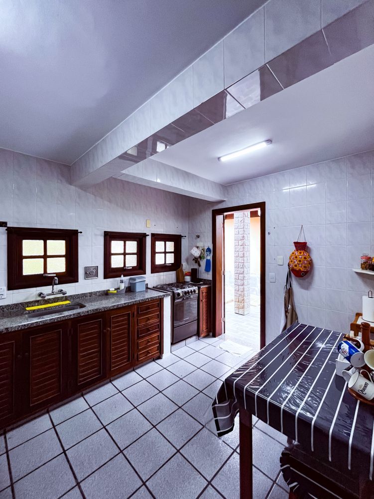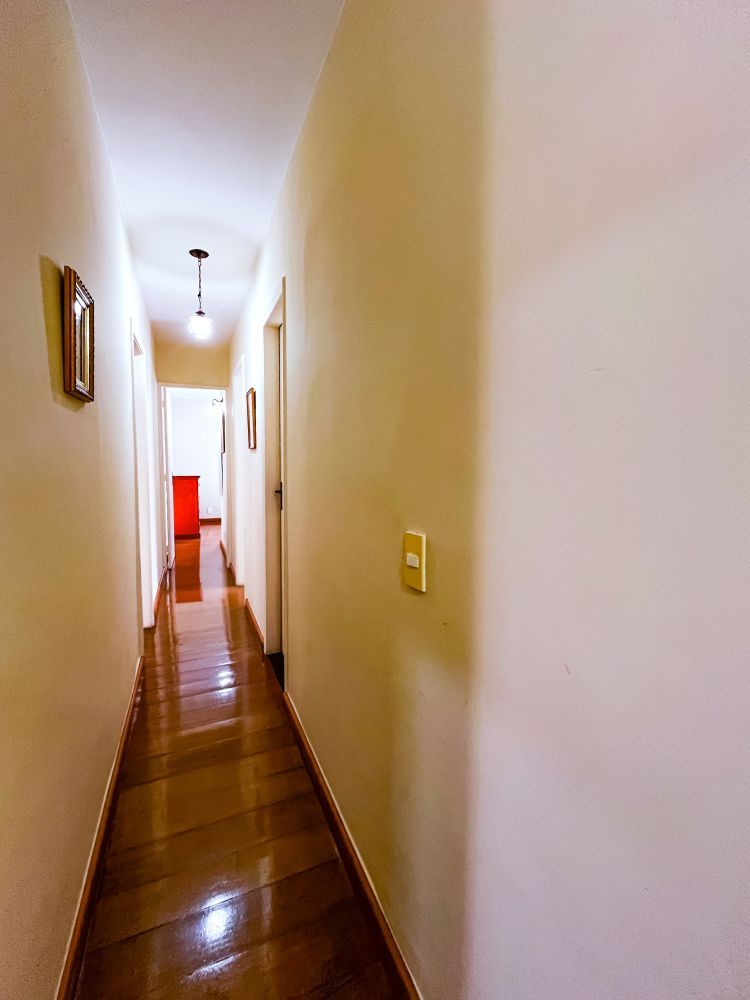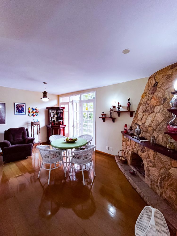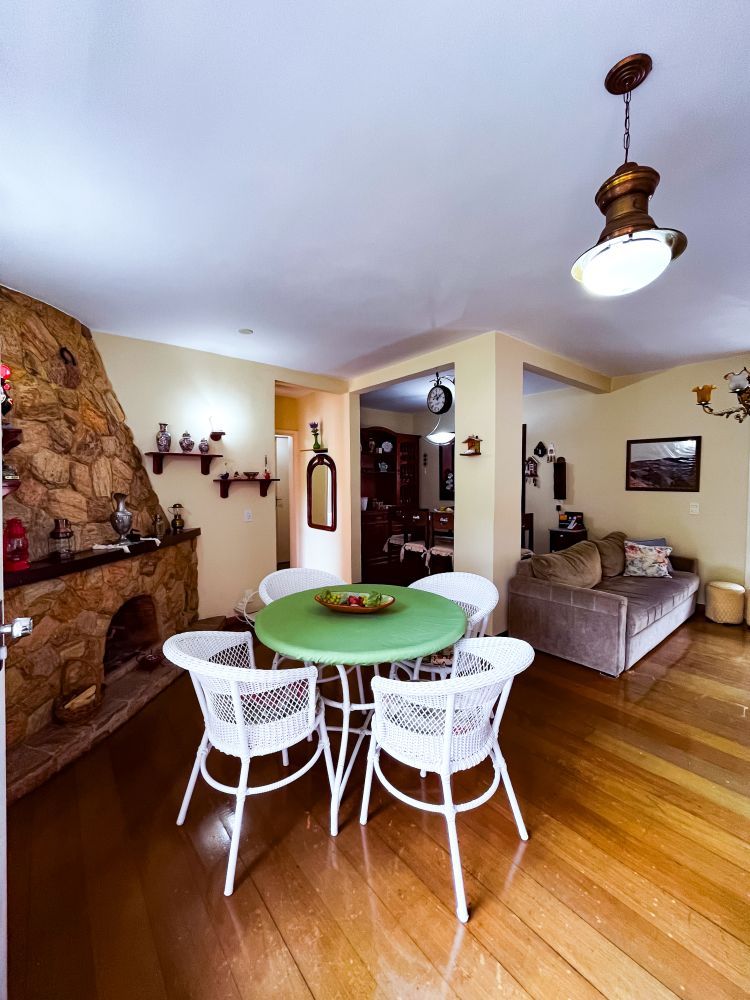 Composição do imóvel: • Sala ampla em três ambientes (estar com lareira, TV e jantar) com varanda; • 03 quartos (sendo 01 suíte); • Banheiro social; • Cozinha com armários; • Área de serviço; • Banheiro de empregada; Área externa e lazer: • Espaço gourmet com churrasqueira; • Piscina; • Ducha; • Salão de festas com banheiro; • Garagem.