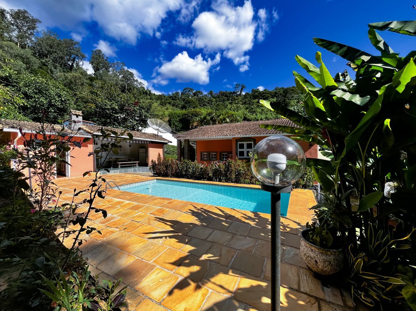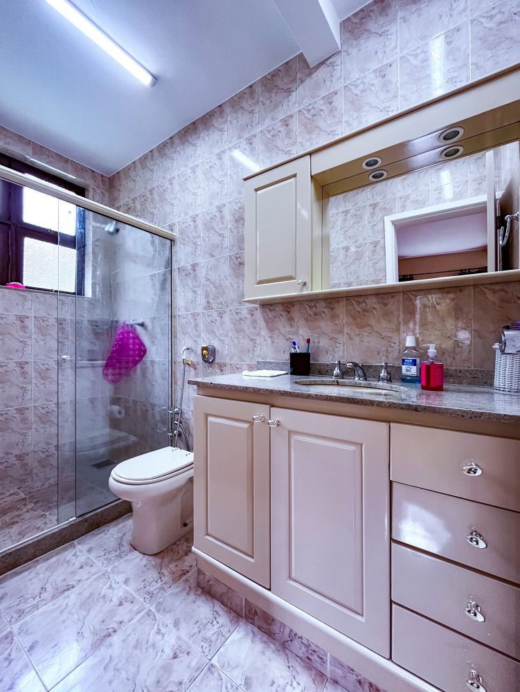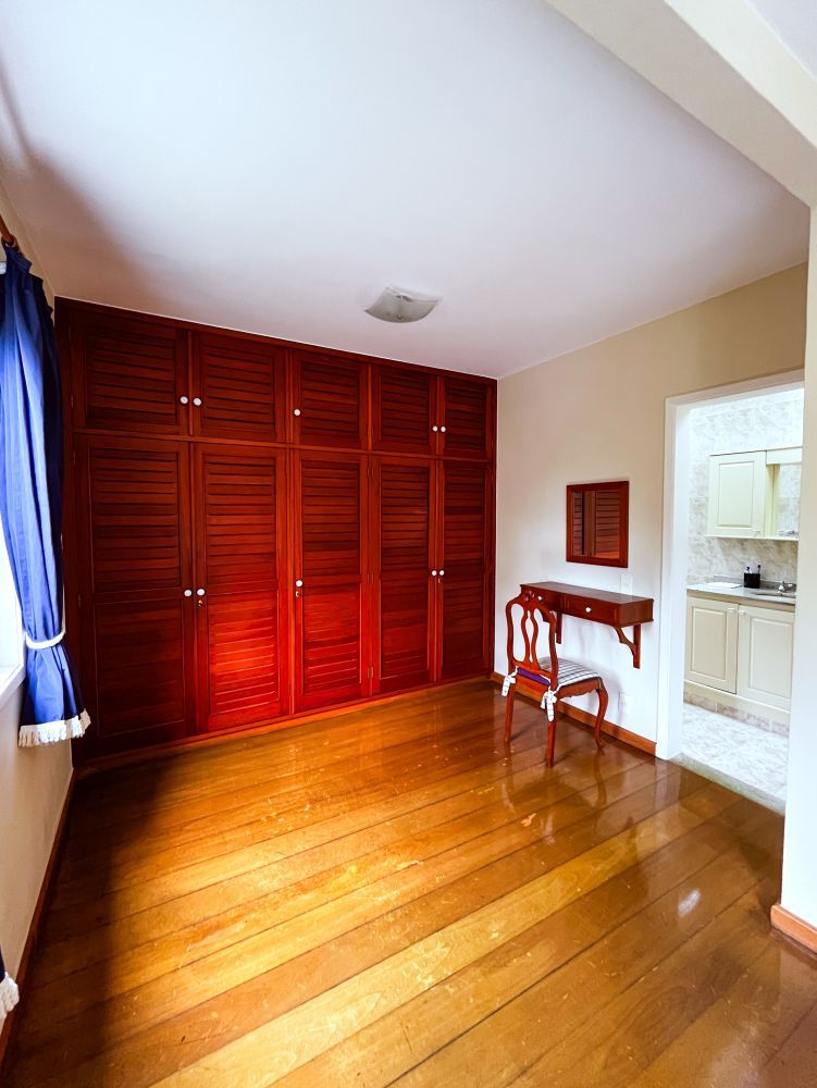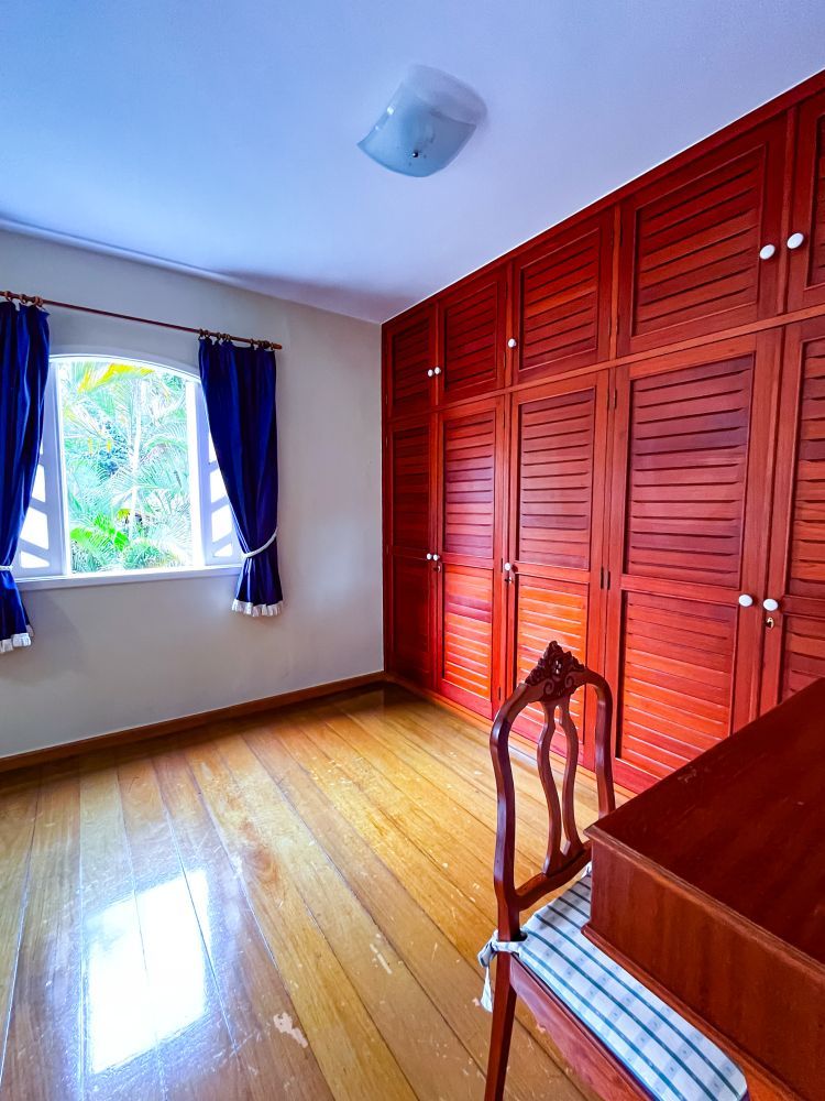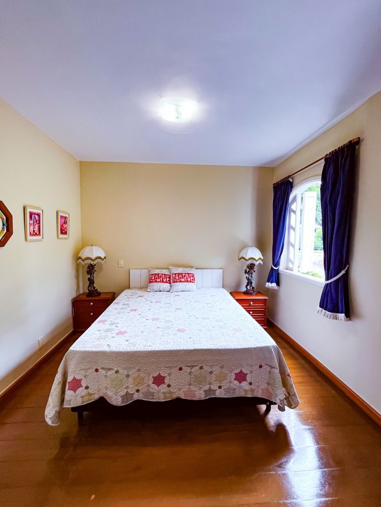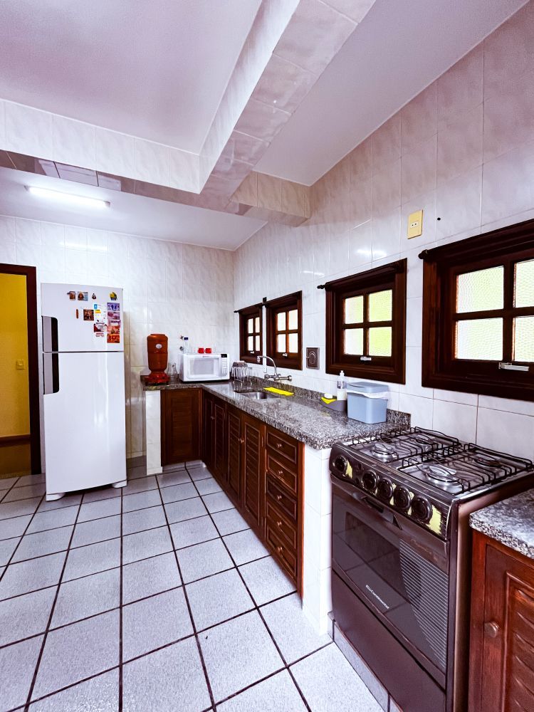 Composição do imóvel: • Sala ampla em três ambientes (estar com lareira, TV e jantar) com varanda; • 03 quartos (sendo 01 suíte); • Banheiro social; • Cozinha com armários; • Área de serviço; • Banheiro de empregada; Área externa e lazer: • Espaço gourmet com churrasqueira; • Piscina; • Ducha; • Salão de festas com banheiro; • Garagem.