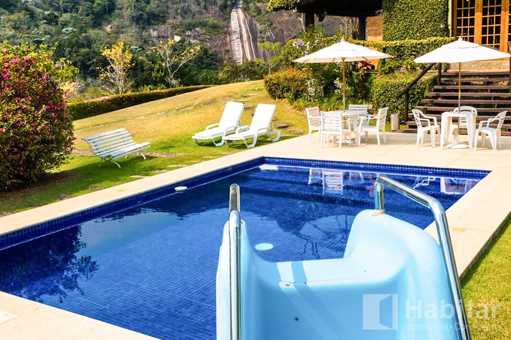 Região cercada por Mata e reconhecida por sua enorme biodiversidade. Distrito ecológico, próximo ao Rio. Cercado por montanhas, Um excelente refúgio de natureza. Belíssima sala composta por: Sala de jantar; Sala de estar; Sala de tv e lareira; Piano. 03 suítes sendo uma máster; uma com jardim de inverno. Lavabo; Cozinha; Dispensa; Área de serviço; Salão de festas; Churrasqueira; Forno de pizza. Sauna seca; Dependência completa de empregada; Campo de futebol: Horta; Casa de hóspedes: 2 Suítes; Aquecimento a gás. Belo jardim; Piscina e água inclusa. OBS: os valores de condomínio e IPTU podem sofrer alterações. Verifique também com o corretor responsável sobre a cobrança de água.