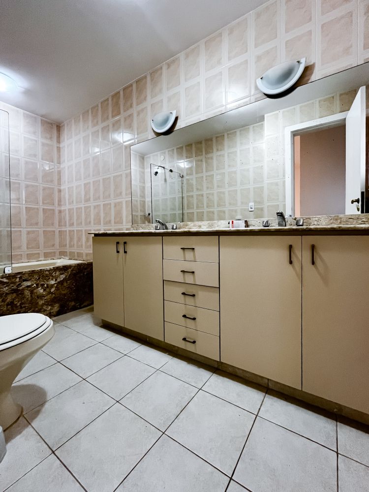 Hall de Entrada Ampla sala com varanda 03 quartos (sendo 02 suítes com varanda; 1 suítes com closet e hidromassagem); Banheiro social Cozinha com armários planejados Terraço 02 vagas de garagem Infraestrutura comum Salão de festas Churrasqueira Playground Quadra poliesportiva Sala de jogos Sauna