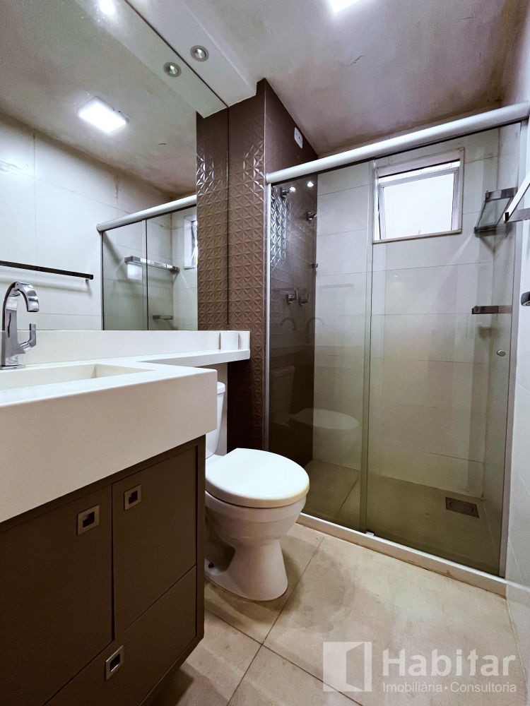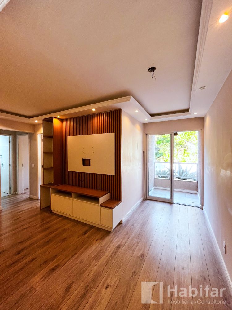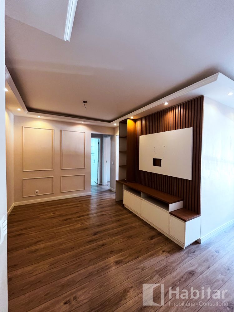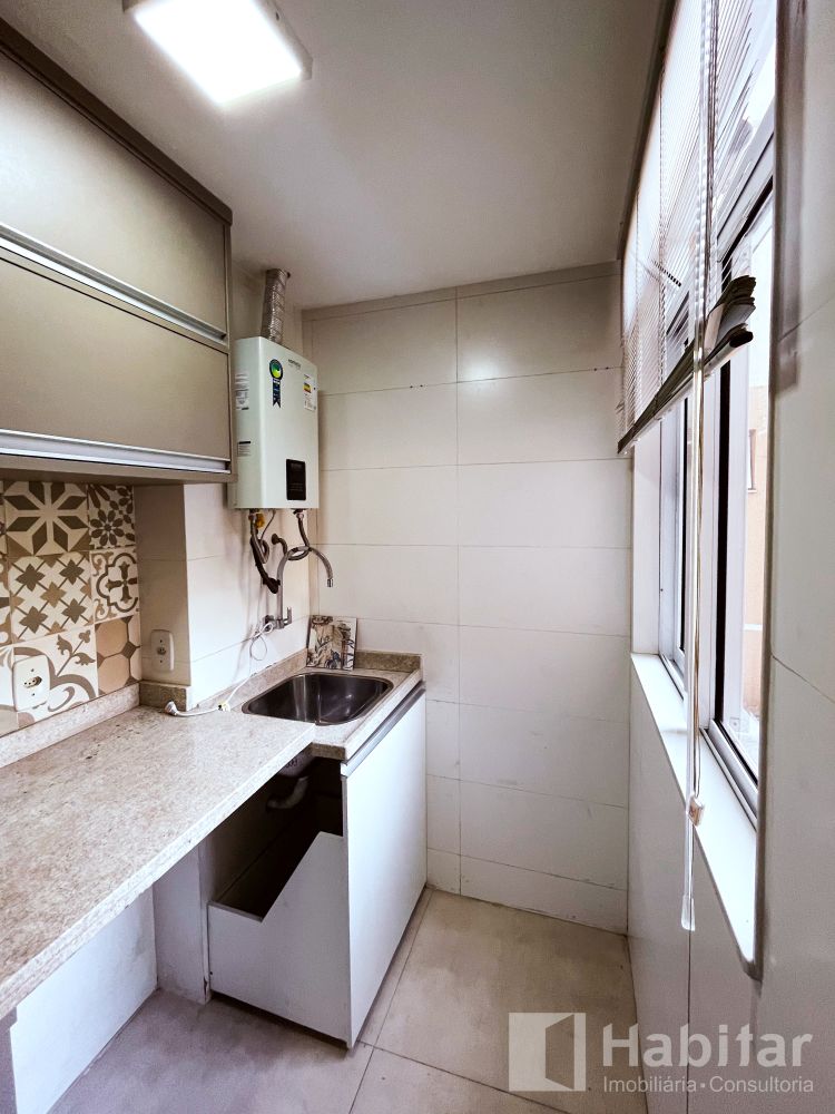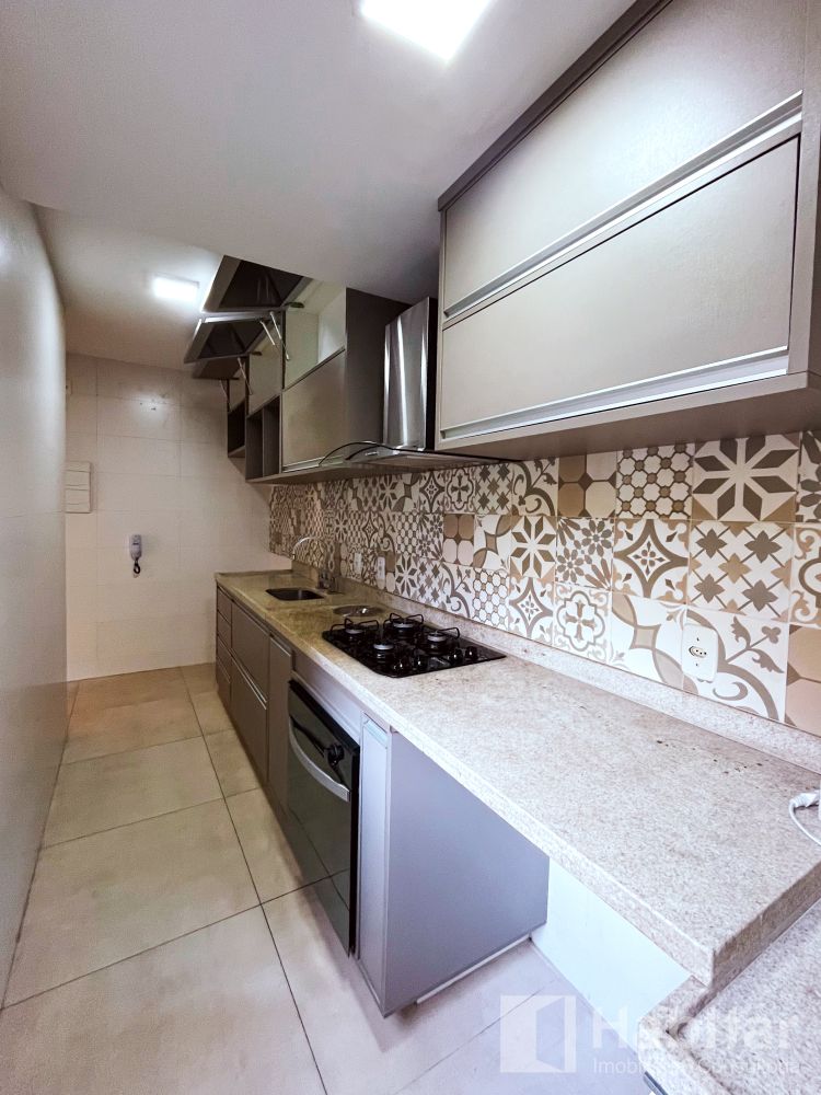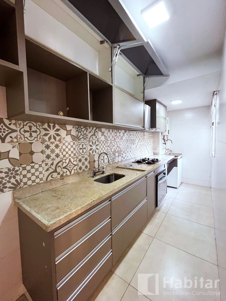 Sala em dois ambientes com varanda; 02 quartos; Banheiro com armários, aquecimento a gás, cozinha planejada com cooktop; forno elétrico/ área de serviço.