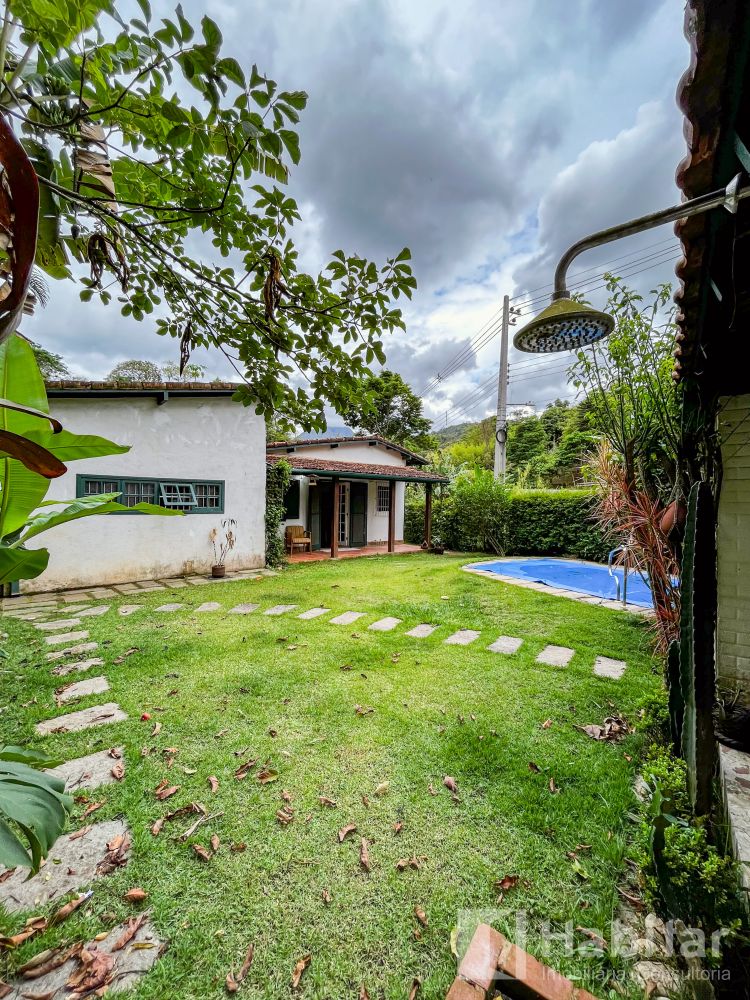 Sala em três ambientes: jantar; estar; lareira; varanda. 02 quartos (sendo 1 suíte); Cozinha com armários; Área de serviço; Banheiro de empregada; Quarto de guardados; Suíte externa; Garagem; Jardim; Piscina; Deck; Sauna a lenha; Espaço gourmet: Churrasqueira. Água de poço.